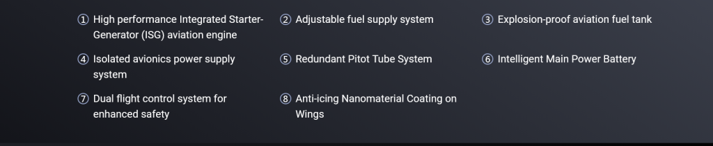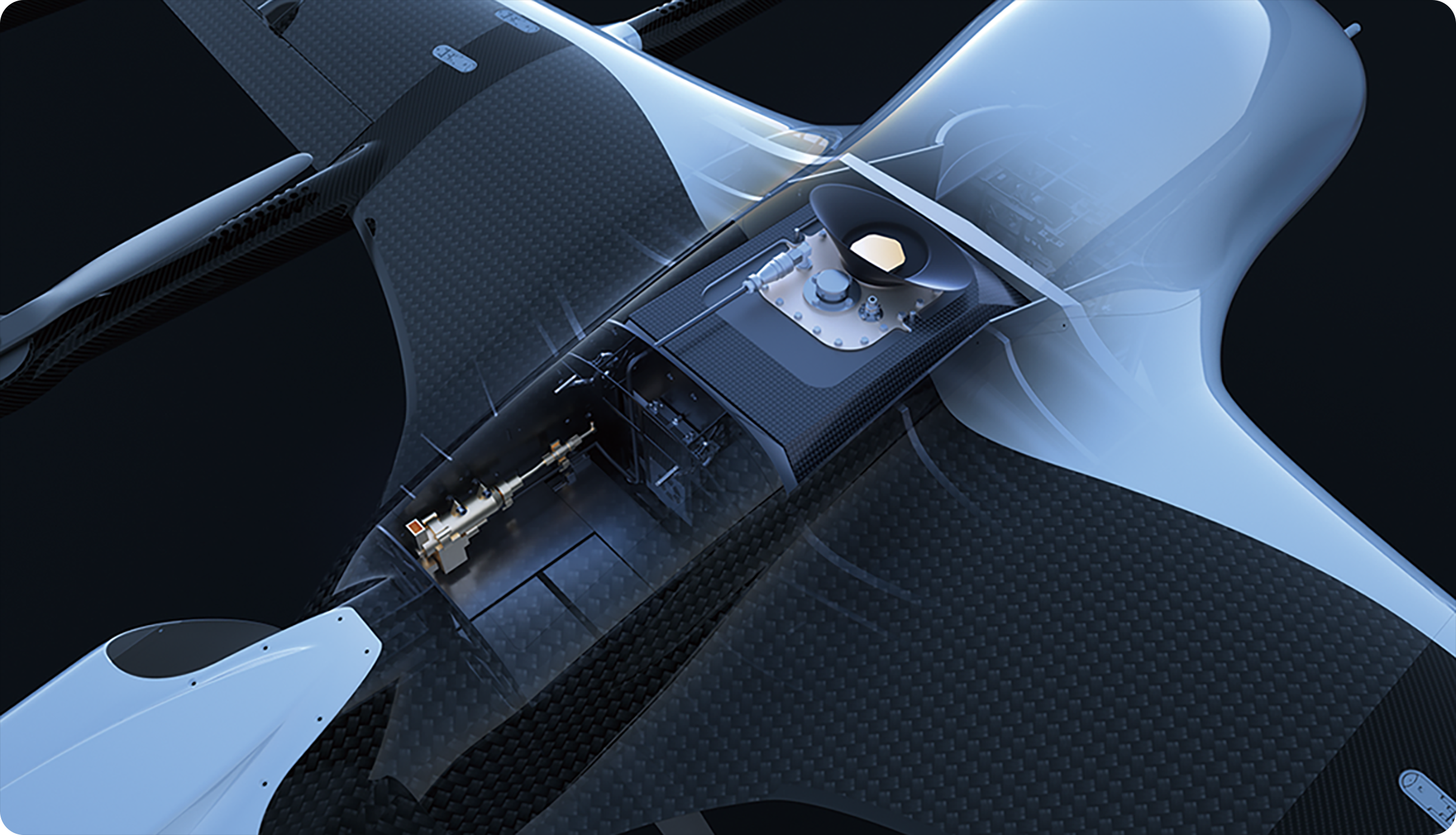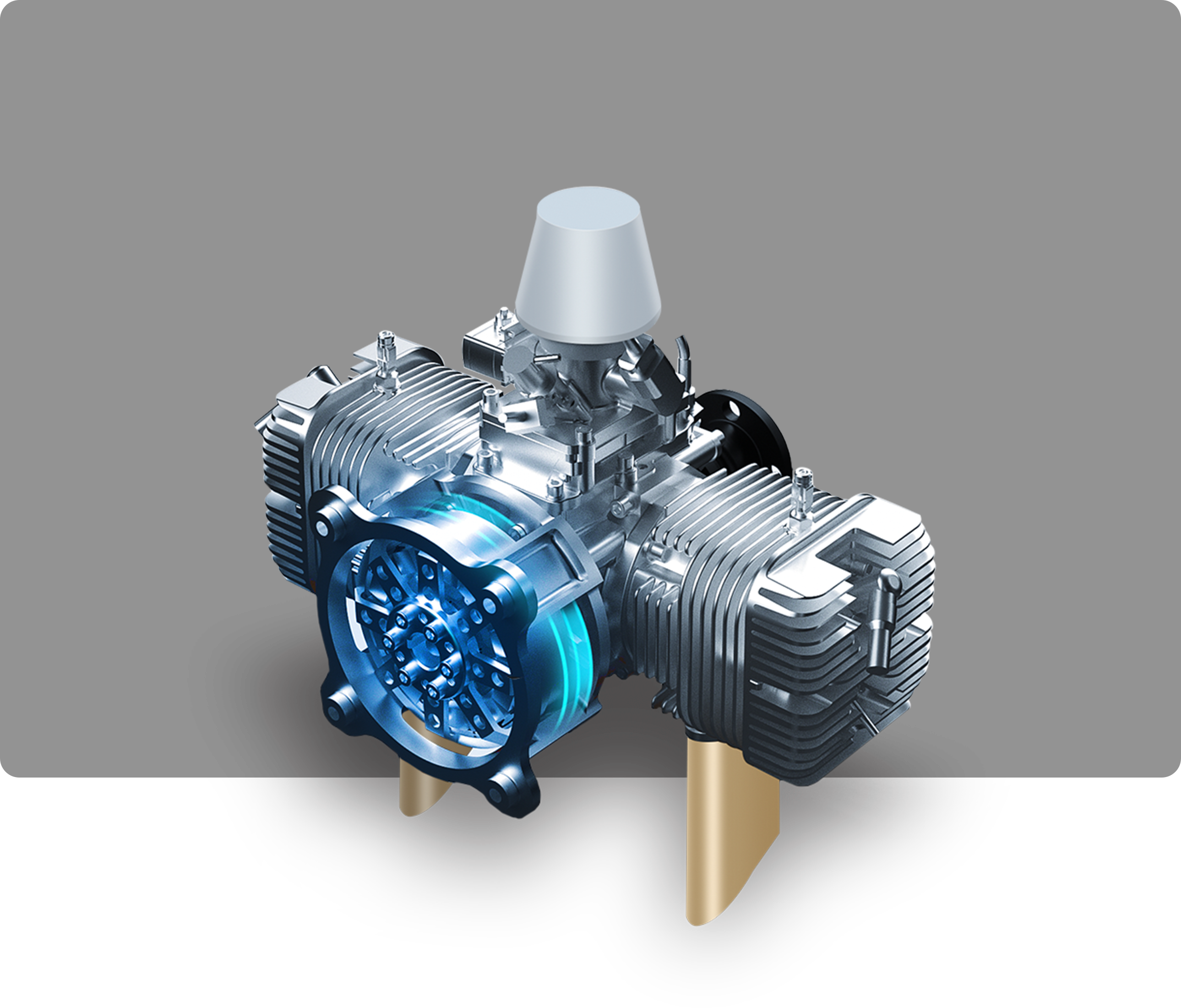 The horizontally opposed twin-cylinder two-stroke electronic fuel injection engine is used, providing the ability to adapt to all-weather operations in high-altitude, high-temperature, severe cold, and harsh weather conditions. The onboard high-power generator offers a power output of over 1000W, fully meeting the demands of simultaneous operation of multiple systems. During flight, the generator can charge the main power battery in real-time, improving energy utilization efficiency and ensuring the safe takeoff and landing of the drone in extreme environments.